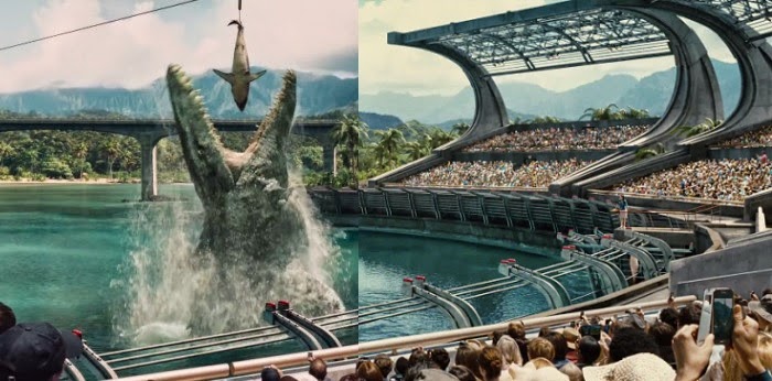 Wired specifically focuses on the shot of a giant aquatic dinosaur (creature?) eating a baited shark. Within the three-to-four months since the initial trailer, the special effects artists have completely changed the backdrop of the scene, improved the quality of the water, and adjusted the overall palette – all without refilming the scene. We sometimes get to see this sort of work-in-progress technical magic as a DVD special feature, but it’s somehow more entertaining to see it happening in real-time. We don’t just get to see where they put the green screen: we get to watch the art direction change.